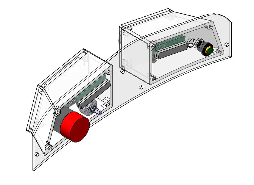 The Olin Electric Motorsports team is a group of students who design, build, and race a Formula One-style electric racecar each year. As the sole member of our Enclosures subteam in 2019, I developed several IP65-rated enclosures, including the dashboard and auxiliary sensor board enclosures. The enclosures were designed in SolidWorks, then manufactured using a combination of 3D printing and waterjetting out of ABS and PLA plastics.